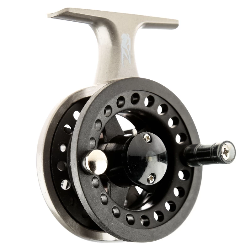 Moulinet de pêche sur glace avec pied long qui offre une bonne prise dans le porte-moulinet et facilite la tâche si vous souhaitez scotcher votre moulinet.