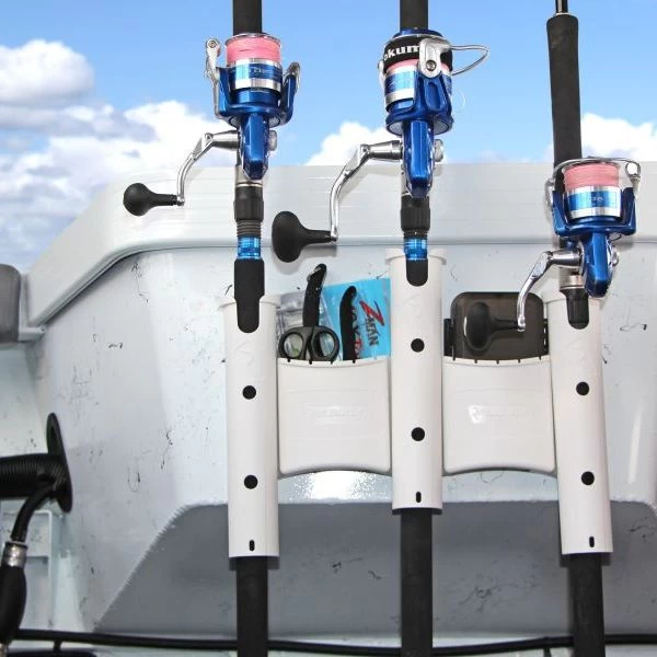 Le RodStow Triple est disponible en noir ou blanc, est livré avec des attaches en acier inoxydable et peut être installé en quelques minutes. Il dispose d’un panier de rangement pour les leurres, les traces et autres agrès, il est même assez grand pour contenir une petite boîte à agrès. Ces porte-cannes ont une goupille de cardan amovible que vous pouvez laisser pour soutenir la canne et arrêter la rotation, ou retirer pour laisser passer la canne.RodStow est un système modulaire, si vous en achetez plus, vous pouvez ajoutez-les ensemble pour créer des porte-cannes plus longs.Le montage décalé est possible, vous offrant une solution pour stocker des moulinets plus grands, sans qu’ils ne se heurtent. Le porte-cannes vertical RodStow convient à la plupart des cannes et moulinets, y compris les moulinets spinning, trigger, bateau et jeu, et toute longueur de canne à pêche. Caddy de Stockage pour leurres, lignes et autres accessoires Taille du tube de 40 mm (1,57 pouce) de diamètre intérieur Peut contenir des gaffes, des crochets de bateau ou des filets Broche de cardan amovible pour arrêter la rotation de la tige Fabriqué à partir de polymères techniques renforcés de fibre de verre stabilisés aux UV Convient à toutes les longueurs de tige Vis en acier inoxydable