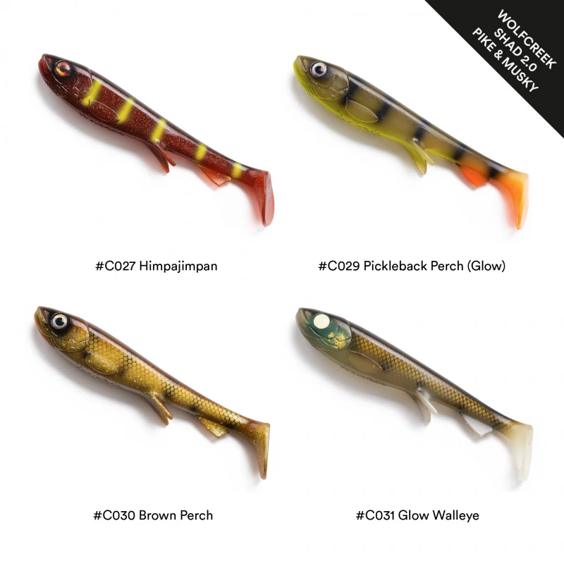 Wolfcreek Shad est de retour ! La série de production du shad classique de Wolfcreek Leurres, maintenant dans une version 2.0 mise à jour. Nouvelles tailles et design fidèles à l’original fabriqué à la main. Livré dans 20 nouveaux motifs de couleurs avec une finition suprême, surmontés d’yeux 3D d’aspect naturel, de vrais poissons.Wolfcreek Shad 2.0 est fabriqué dans un plastisol sans phtalate, parfaitement doux et extensible – idéal pour le action de nage parfaite, résistance supérieure à la déchirure et meilleur pour l’environnement !Wolfcreek Shad 2.0 a une excellente action de nage, peu importe comment vous choisissez de monter votre leurre. Nous vous recommandons d’utiliser le poids à visser Wolfcreek Leurres Twisthead avec un harnais de déclenchement. Ou utilisez une vis peu profonde pour cette présentation en eau super peu profonde. Le Wolfcreek Shad 2.0 est une excellente option pour le maskinongé, le grand brochet et d’autres espèces de prédateurs.Profil largeExcellente nageCouleurs incroyablesPlastisol sans phtalates, parfaitement souple et extensiblePeut être attaqué avec un stinger peu profond ou une tête plombée